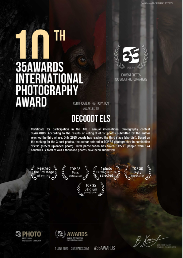 In 2022 behaalden deze 2 foto’s de top 100 bij de Pet Photographer of the Year.